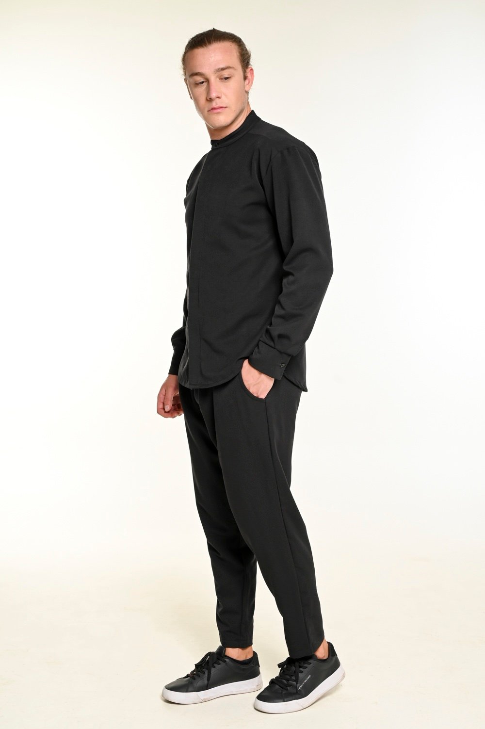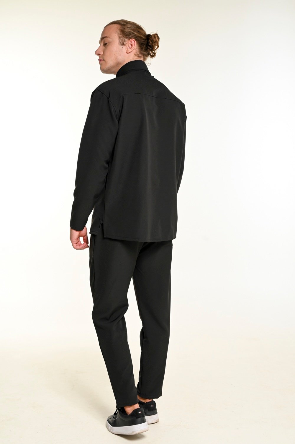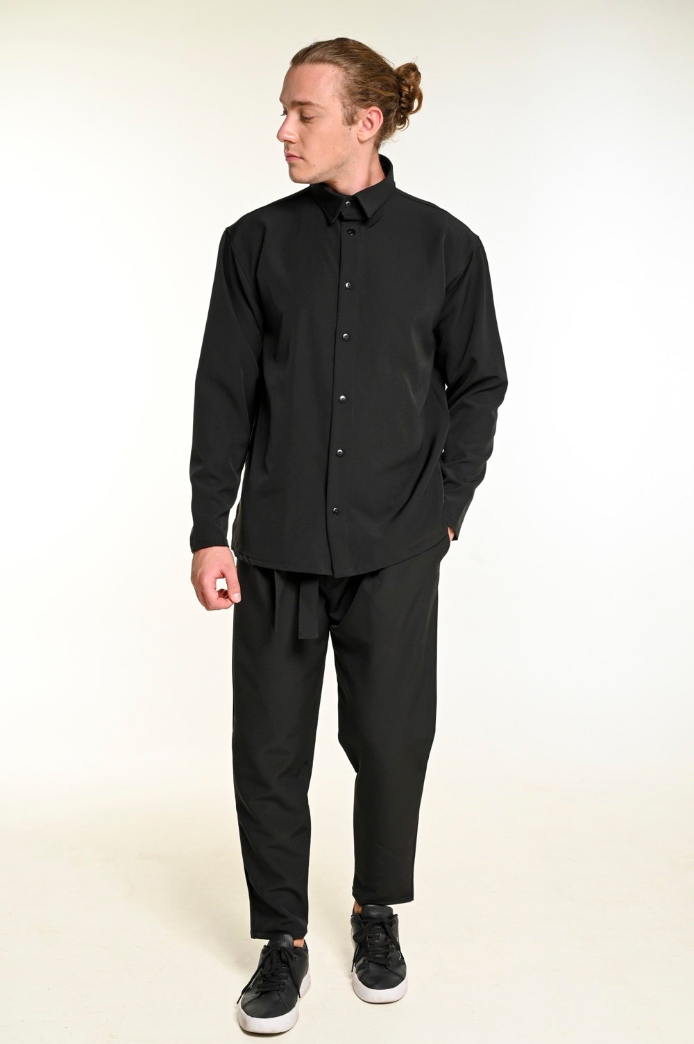 Φορέστε το με sneakers για χαλαρό look ή με loafers για πιο κομψό αποτέλεσμα. Το μονόχρωμο μαύρο προσδίδει δυναμικότητα και minimal αισθητική, εύκολα συνδυάσιμο με μαύρα ή λευκά αξεσουάρ.