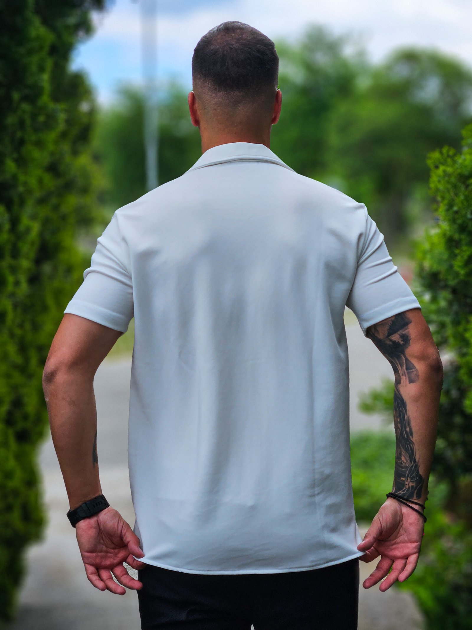 Ανανεώστε το καλοκαιρινό σας στυλ με αυτό το κομψό ανδρικό κοντομάνικο πουκάμισο σε λευκή απόχρωση. Κατασκευασμένο από ελαφρύ και δροσερό ύφασμα, προσφέρει άνεση και στυλ σε κάθε εμφάνιση. Διαθέτει μοντέρνο γιακά τύπου καμπάνα, μπροστινή τσέπη στο στήθος και μαύρα κουμπιά που προσθέτουν διακριτική αντίθεση.