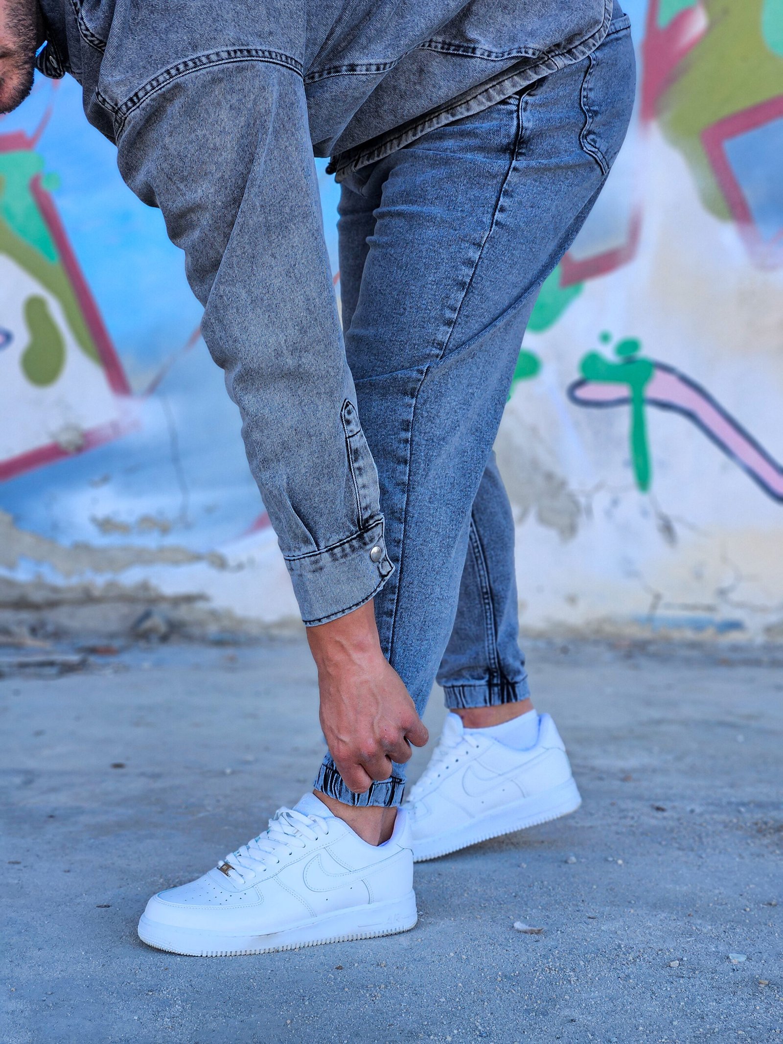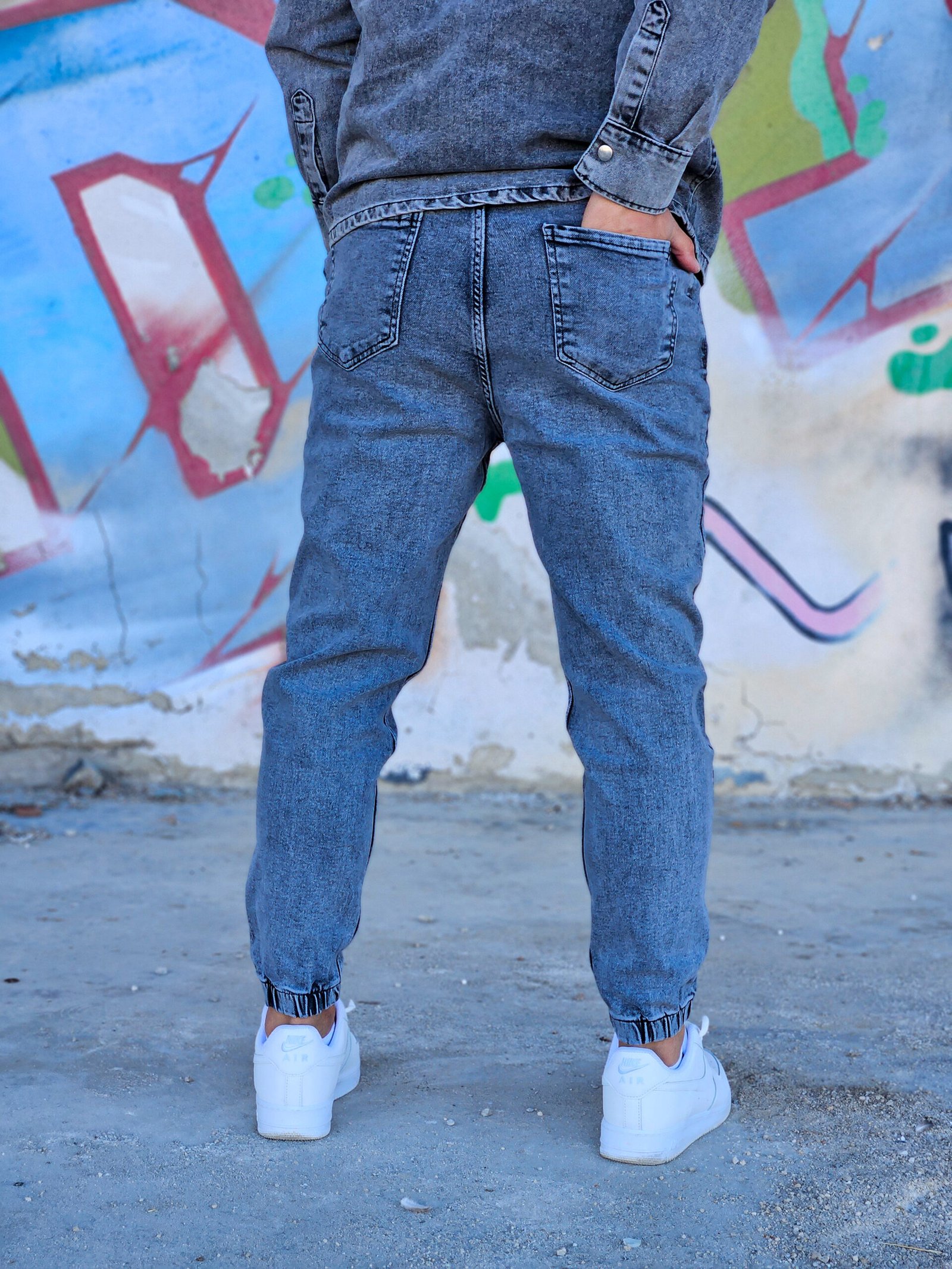 Ανανεώστε το στυλ σας με αυτό το μοντέρνο ανδρικό jean παντελόνι σε washed γκρι απόχρωση. Διαθέτει άνετη εφαρμογή και λάστιχο στο τελείωμα για ξεχωριστό streetwear look. Το ύφασμα του είναι ελαστικό, προσφέροντας άνεση και ευκολία κινήσεων όλη την ημέρα. Ιδανικό για casual εμφανίσεις με sneakers ή πιο προσεγμένες συνδυασμένες επιλογές.